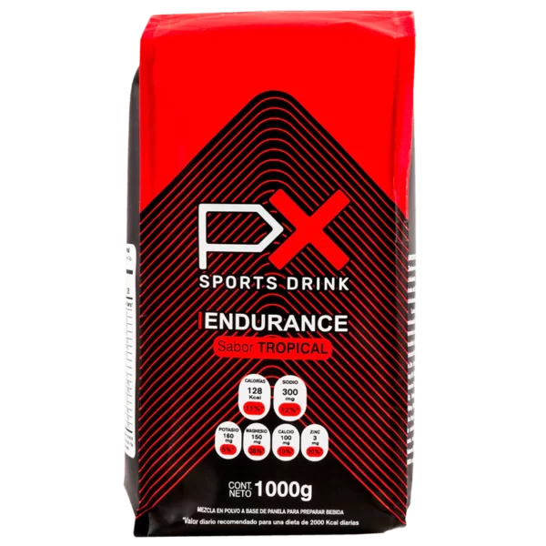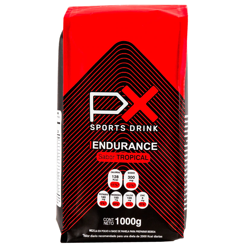 PX Endurance es una fuente tanto de hidratación como de calorías, a partir de Panela y Maltodextrina, ambas fuentes de rápida disponibilidad. La diversidad de carbohidratos que se encuentran en la panela da una mezcla de energía única ya que tiene Glucosa, Fructuosa y Sacarosa. Para hidratar, viene potenciado con los 5 electrolitos como Sodio, Potasio, Magnesio, Calcio y Zinc. Que se encuentran en adecuado balance para reponer las “sales” perdidas por el sudor.