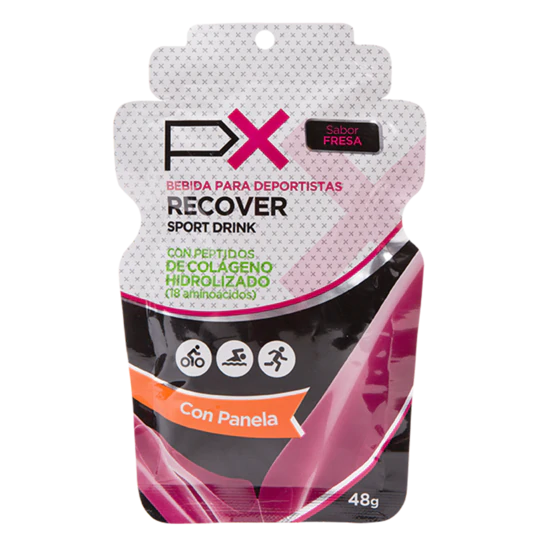 PX Recover es una bebida diseñada para la recuperación del cuerpo después del ejercicio. Se recomienda usarlo para después de jornadas de entrenamiento o competencia, en la reconocida “ventana de recuperación” que ocurre 30 minutos después de haber acabado la actividad física. En este lapso, el cuerpo busca fuentes para recuperar y reparar los tejidos afectados, y dispondrá de lo mejor que encuentre, en el caso de PX Recover una rápida fuente de energía (panela + maltodextrina) sumada con Proteína de Suero, y Proteína (Peptidos) de Colágeno Hidrolizado además de una fuente de electrolitos para rehidratar y vitaminas.